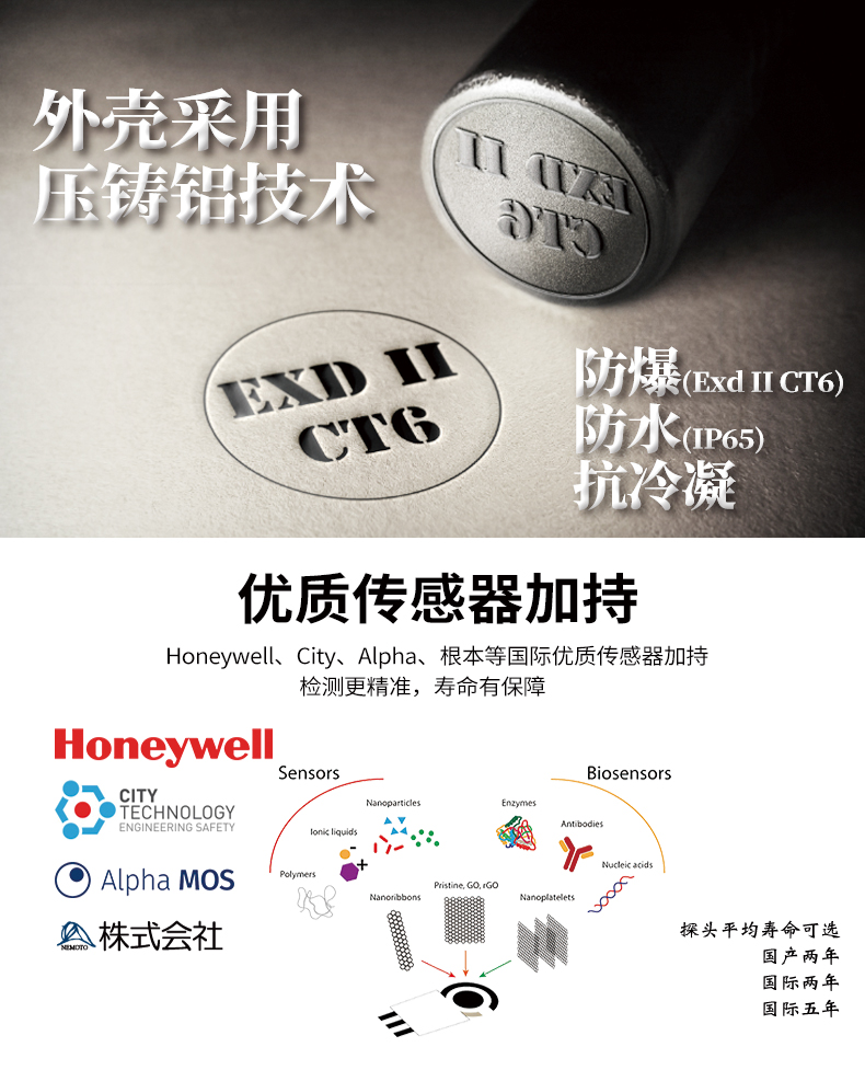 防爆式臭氧傳感器,支持ExdⅡCT6等級防爆,量程0-10ppm/0-20ppm/0-100ppm,響應時間<15s,功耗<4W,適合使用在工廠、礦區、管廊等場所,支持多種接口。